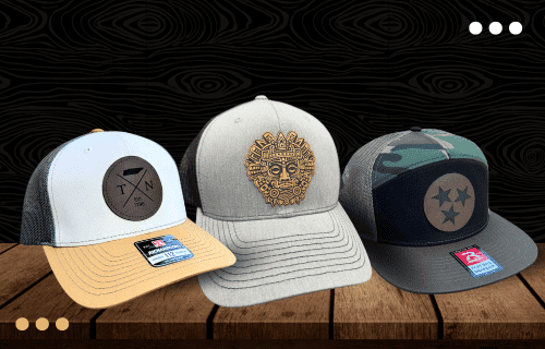 Design your perfect custom hat with a laser-engraved or UV printed leatherette patch. Choose from trucker, snapback, ponytail hats and more in a variety of colors. Bold, durable, and made to stand out.